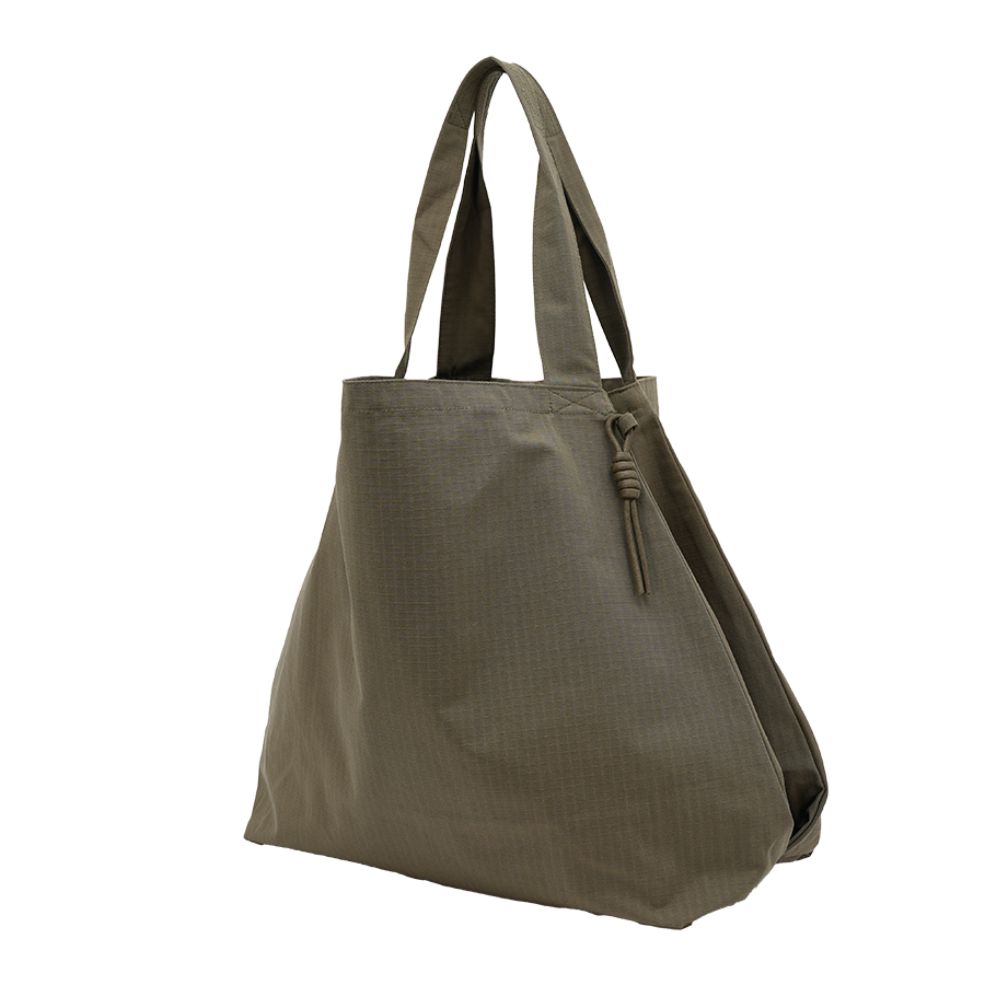ヨーロッパのヨガバッグからインスパイヤーされた3層構造のトートバッグです。中央と左右に大きな仕分けがあり