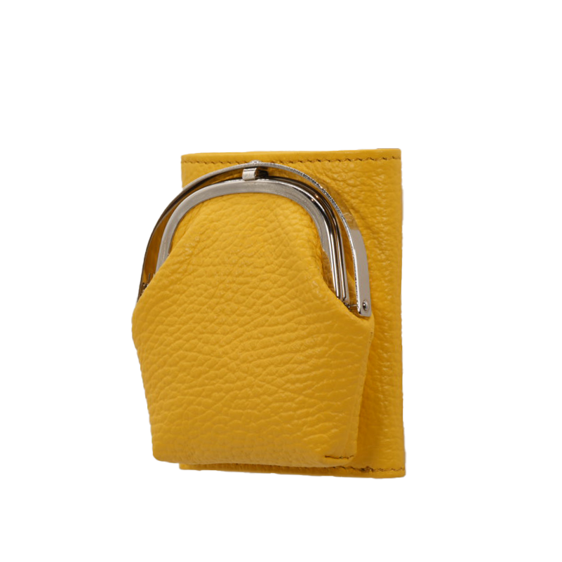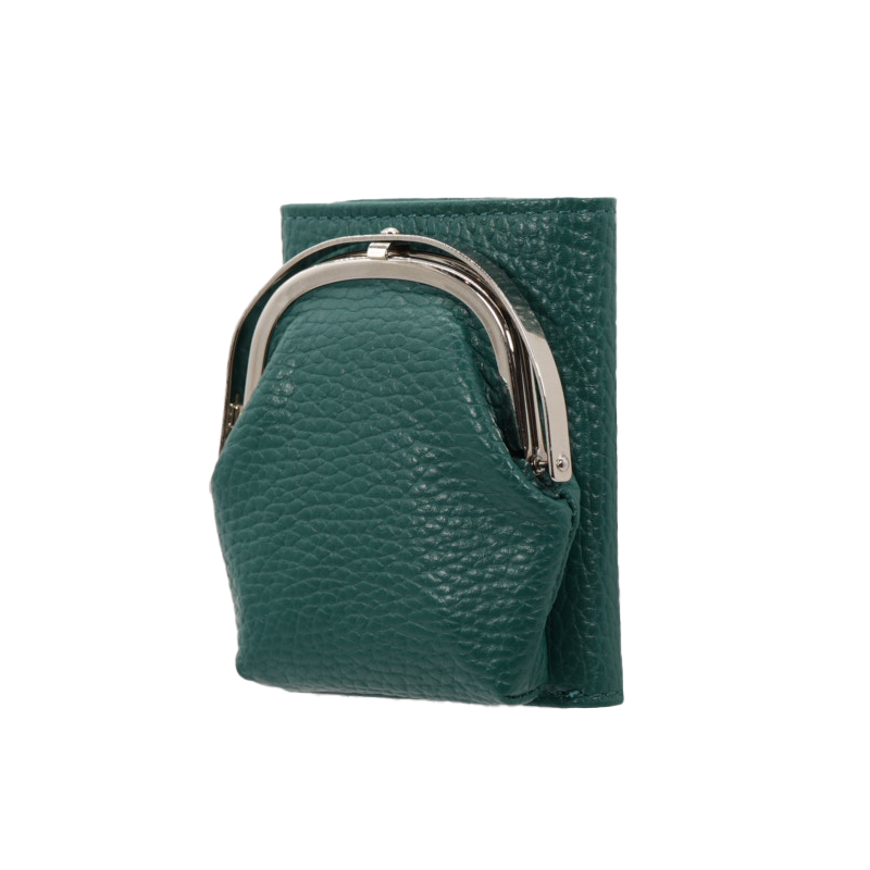 ヴィンテージの小銭入れの様な口金は、両サイドを中央に押し込むと開閉する仕組みになっています。