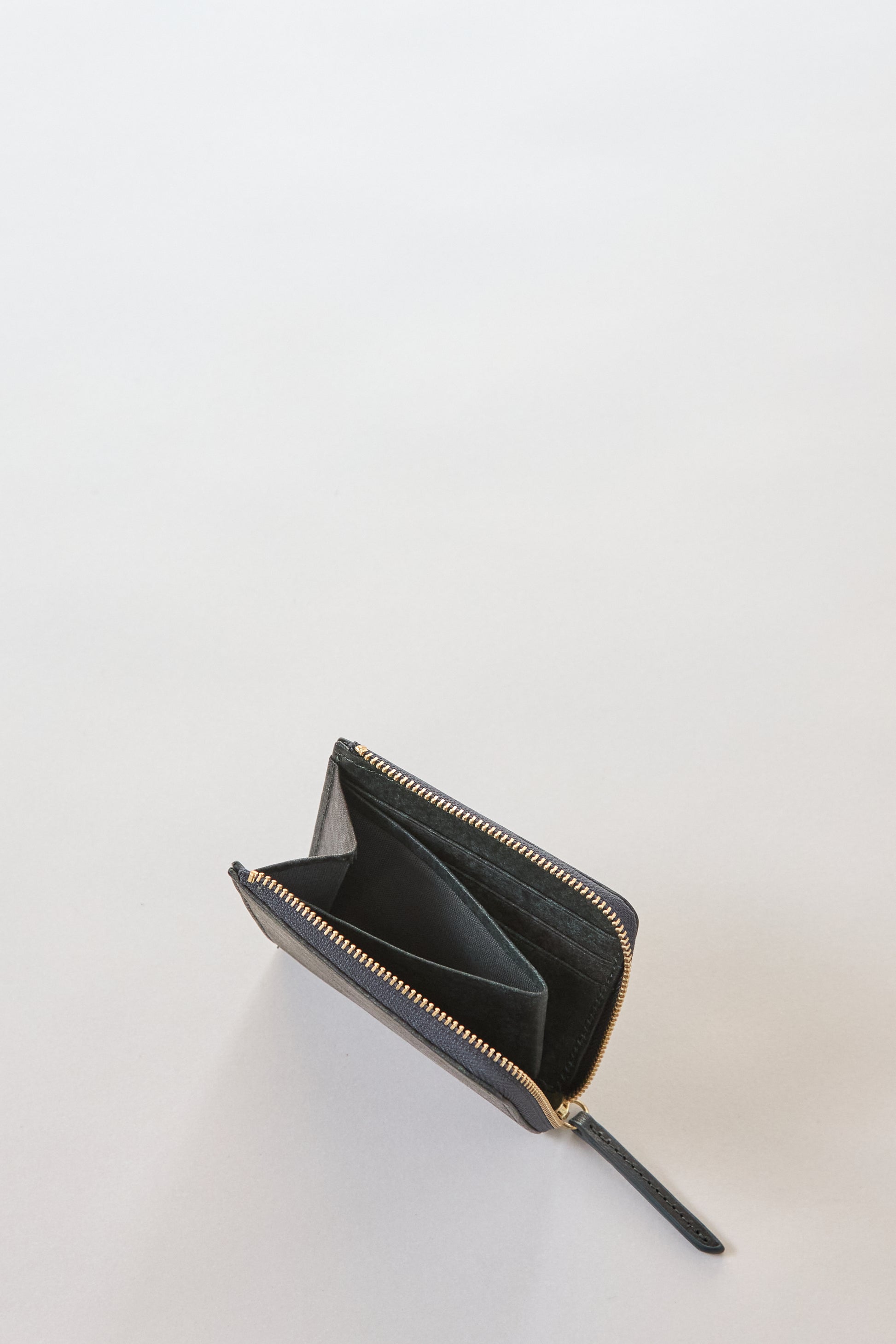 収まりの良いL-ZIPのハーフタイプ。カードポケットは内側の6箇所、外側に1箇所あります。交通系ICカードを外側に入れておけばパスケースとしても活躍します。スリムな設計ながらも小銭ポケットは片側蛇腹マチ仕様になっています。札は2つ折りにすると収納可能です。